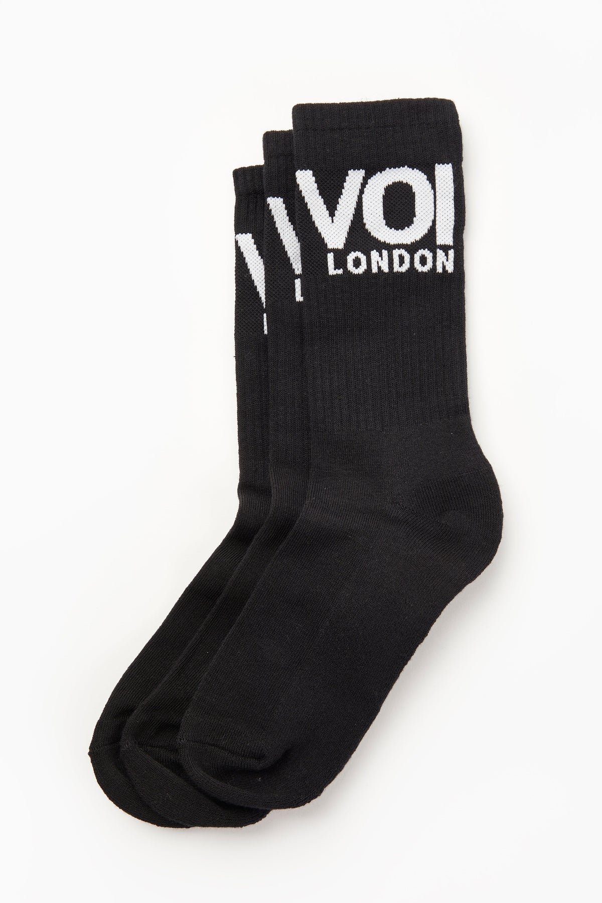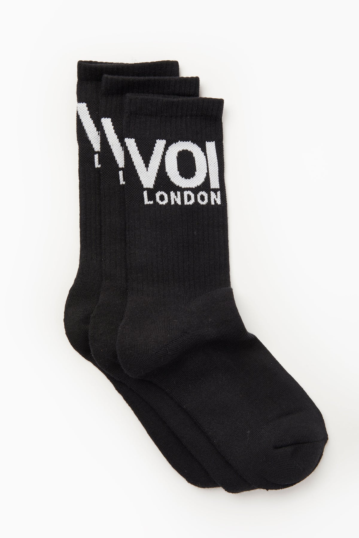 This 3 Pack of 'VOI' Sock's is the perfect add on to any purchase. Our socks are constructed from a stretchy, breathable cotton fabric mix and have a ribbed neck, making them both super soft and super snug. Our socks have contrast branding around the top and due to their stretchy fabrication, are one size that fits a UK 6 up to a UK 12, after all, you can never have too many socks!