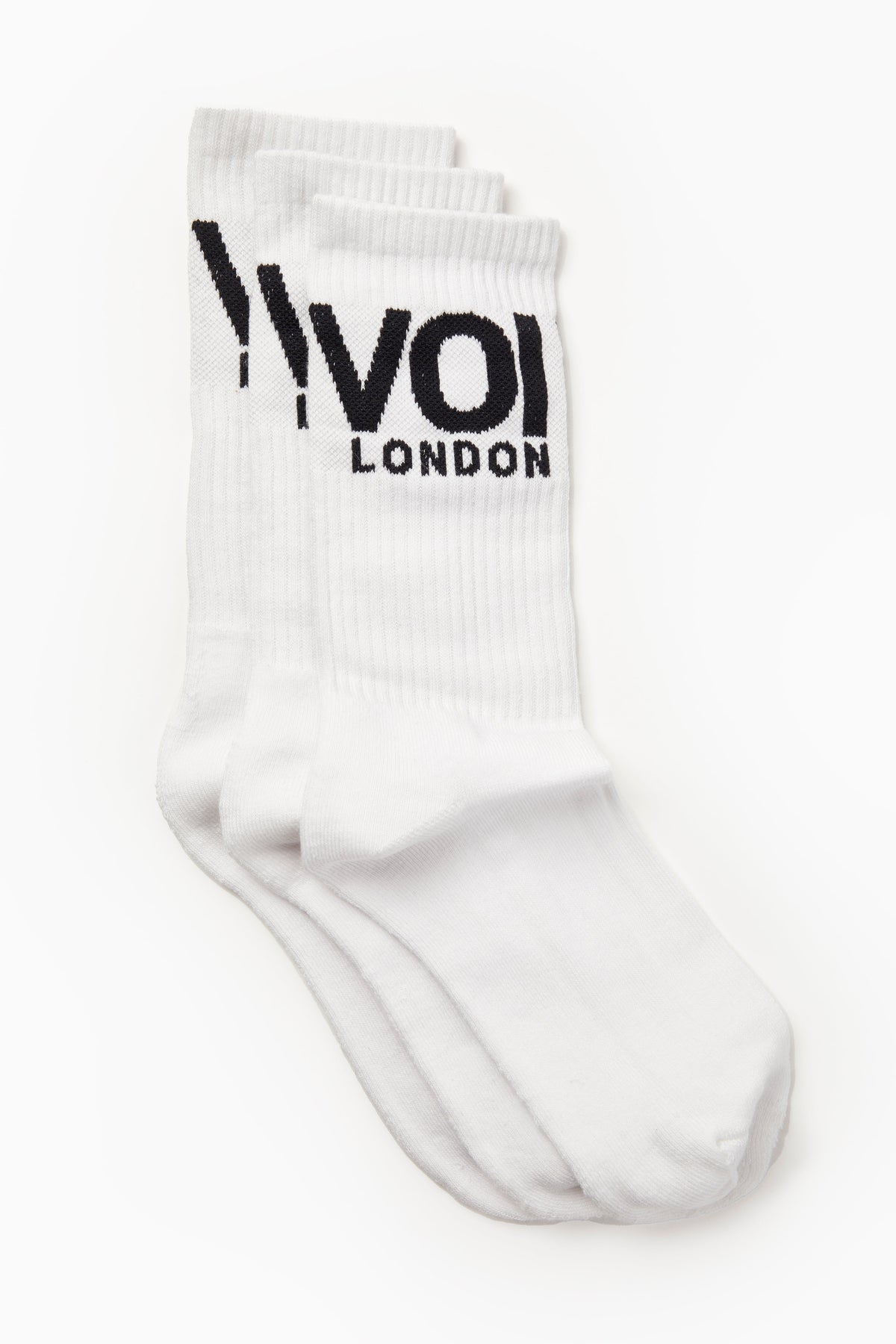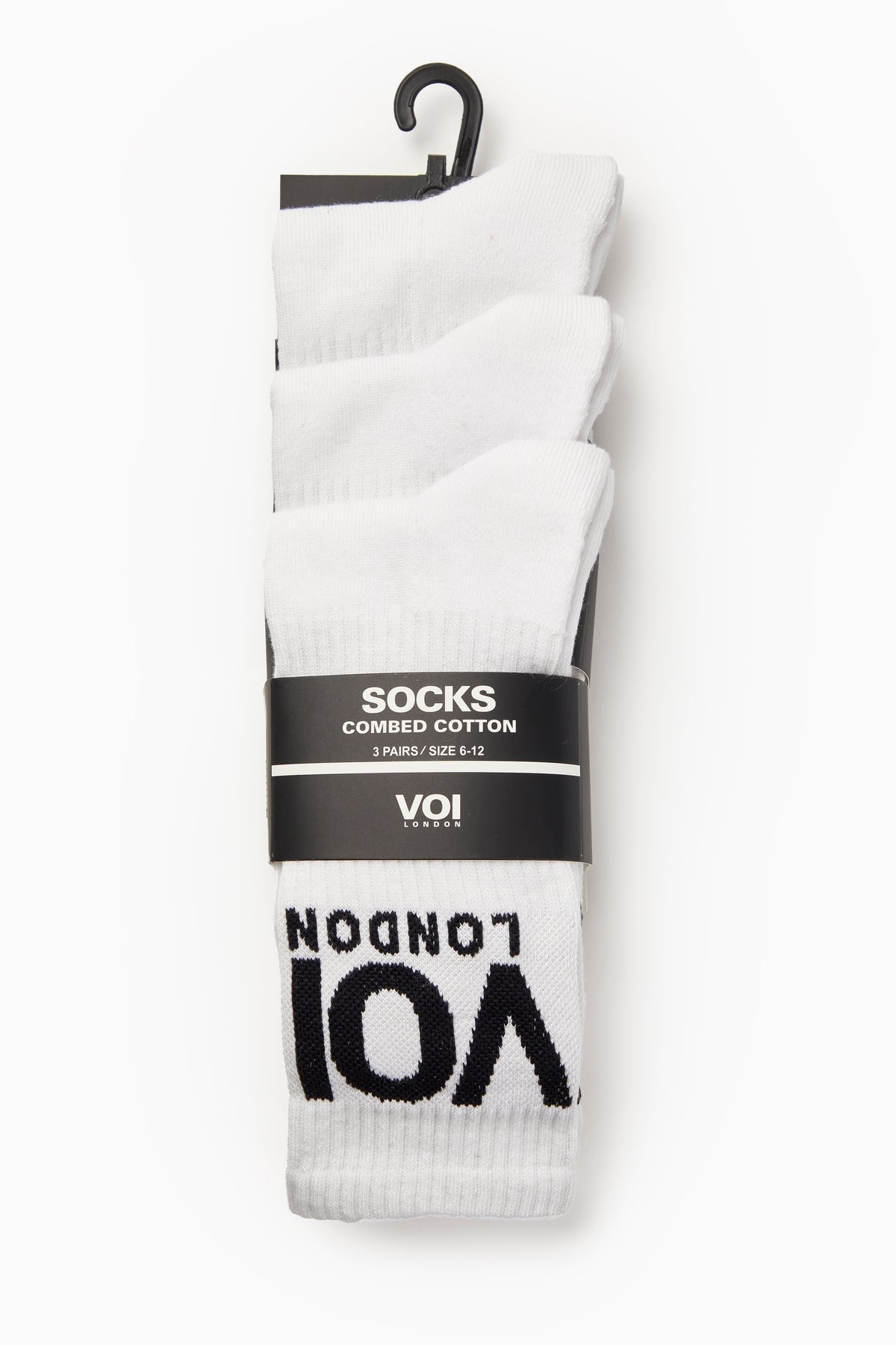 This 3 Pack of 'VOI' Sock's is the perfect add on to any purchase. Our socks are constructed from a stretchy, breathable cotton fabric mix and have a ribbed neck, making them both super soft and super snug. Our socks have contrast branding around the top and due to their stretchy fabrication, are one size that fits a UK 6 up to a UK 12, after all, you can never have too many socks!